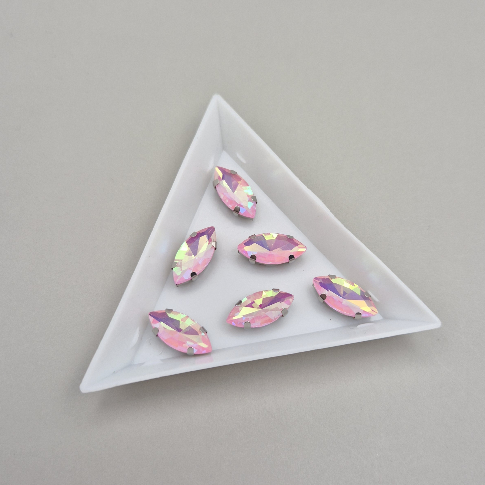 Stras 7x15mm frunza roz AB